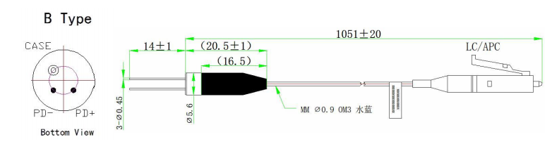 InGaAs Pigtailed Photodiodes coupled multimode fiber, with a core diameter of 50µm or 62.5µm selectable, and a detection wavelength range of 900-1700nm.