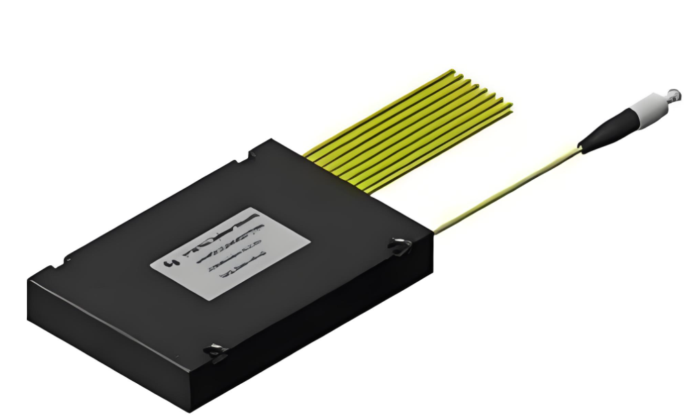 PLC Plane Wave PLC (Planar Lightwave Circuit) optical splitters are integrated waveguide optical power distribution devices based on quartz substrates, fabricated using semiconductor processes (photolithography, etching, development, etc.). PLC splitters split optical signals from a single optical fiber into multiple optical fibers, achieving uniform distribution of optical energy. The optical waveguide array is located on the upper surface of the chip, integrating the splitting function onto the chip; then, multi-channel fiber arrays are coupled to the input and output ends at both ends of the chip and encapsulated.
